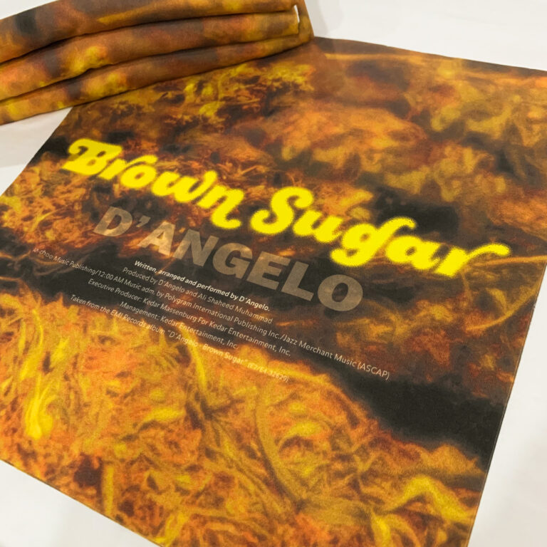 1995年にリリースされたD’ANGELOのメジャーデビューシングル「BROWN SUGAR」。ジャケットの問題で発売中止となった幻の12inchの裏ジャケットをプリント。